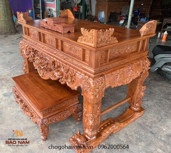 Bảo Nam là cơ sở chuyên sản xuất đồ thờ gỗ cao cấp uy tín , chất lượng hàng đầu hiện nay. Tại đây chúng tôi chuyên sản xuất nội thất phàng thờ như : Bàn thờ án gian, sập thờ, bàn thờ, cuốn thư. đại tự, câu đối, hoàng phi, cửa võng. Được làm nhiều chất gỗ cao cấp khác nhau như : Gỗ gụ, gỗ đỏ, hương đá, mít, dổi .v.v.. Những sản phẩm chúng tôi cho ra thị trường bằng cả tâm huyết tình yêu với nghề thủ công mỹ nghệ.