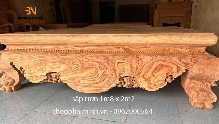 Mẫu sập trơn gỗ cao cấp, là sản phẩm được rất nhiều người sử dụng từ xưa tới nay. Ngày nay, với sự phát truyển và lền kinh tế vược bậc, nên nhu cầu sử dụng mẫu sập trơn ngày càng gia tăng. Bảo Nam cũng nắm bắt thị trường cho ra rất nhiều kiểu mẫu đẹp với nhiều loại gỗ cao cấp như : Gỗ gụ , gỗ hương đá , gỗ gõ đỏ .v.v. Hôm nay tôi xin giới thiệu đến các bạn bộ sập trơn 1m8 x 2m2 gỗ hương đá vân đẹp siêu víp đang là xu hướng nhất trên thị trường hiện nay. Bạn hãy cùng mình đi ngắm vẻ đẹp của sản phẩm này nhé.